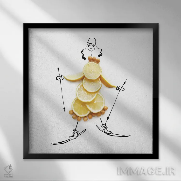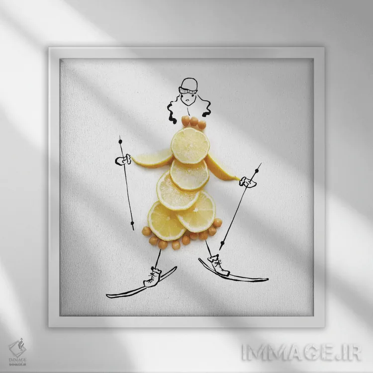 تابلو اسکی حُمُص اثر گرچن روهرز - نمای قاب‌دار سفید