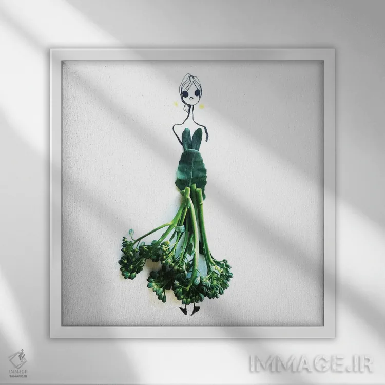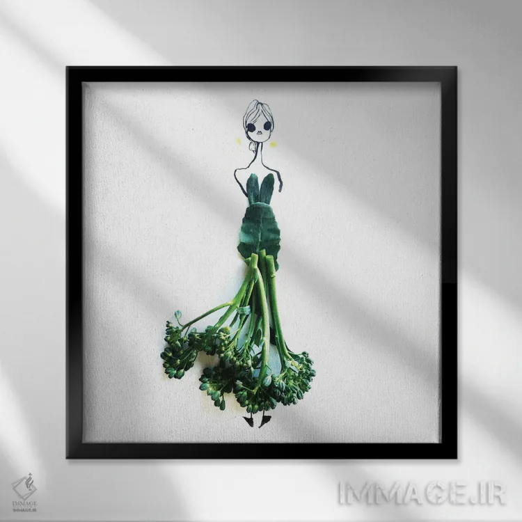 «بروکولینی (کلم سبز ایتالیایی)» اثرِ «گرچن روهرز» با حالوهوای تزئینیِ این اثر، فضا را روشن و مرتب میکند؛ مناسب نشیمنهای روشن و چیدمانهای مدرن.