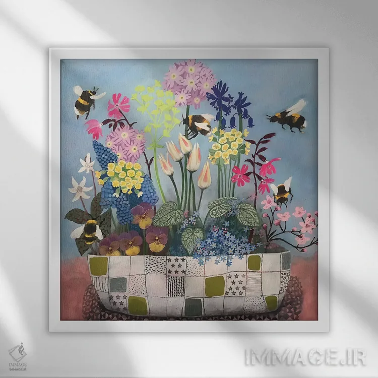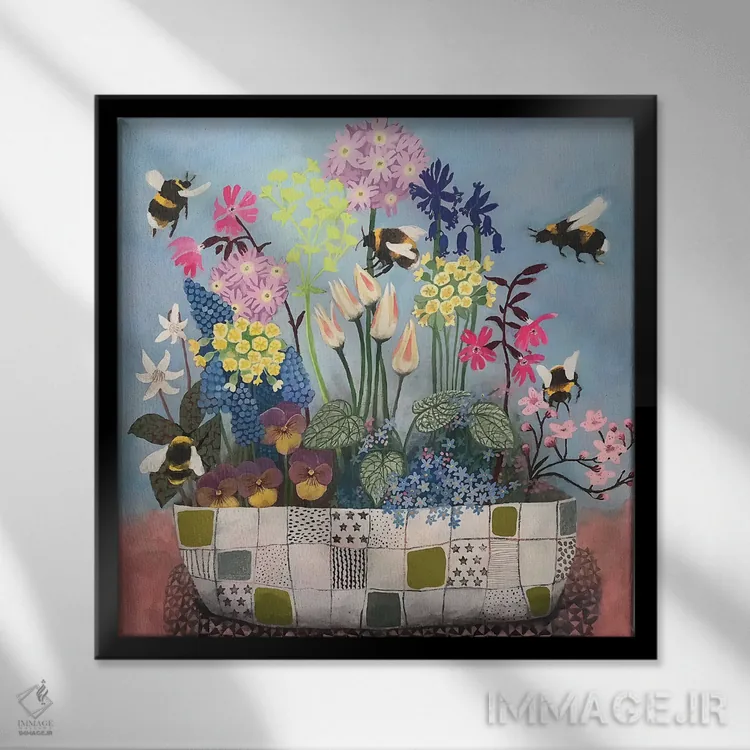 برای دکورهای صمیمی، «زنبورهای عسل از گلهای بهاری استقبال میکنند» اثرِ «گرتی یانگ» بافت و جزئیات را طوری نشان میدهد که نگاه میماند؛ برای نشیمنهای خانوادگی انتخابی خوشسلیقه است. هم فضا را گرم میکند، هم شلوغش نمیکند.