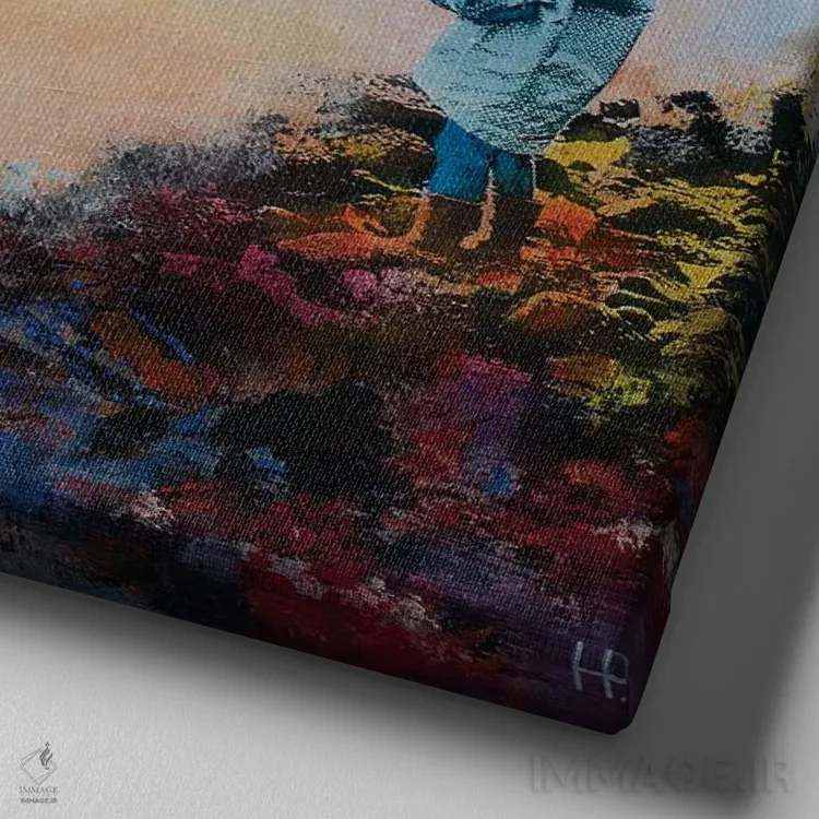 بوم گالری ایماژ طوری طراحی شده که اثر روی دیوار «پرداختشده» و همچنین حرفهای دیده شود—نه پرزرقوبرقِ بیپایه؛ بلکه دقیق و خوشپرداخت. بافت ظریف کنواس باعث میشود حس اثر هنری را در نگاه نزدیک نگه میدارد بدون اغراق؛ فقط دقیقتر. کنترل تونها باعث میشود کمک میکند رنگها روی دیوار واقعیتر بنشینند و نتیجه را یکدستتر میکند. حاصل کار، یک تابلو خوشنشین است که هم از دور اثرگذار است و هم از نزدیک خوشخوان؛ و اگر بخواهید، میتوان چیدمان را برای گالریوال هم پیشنهاد داد.
