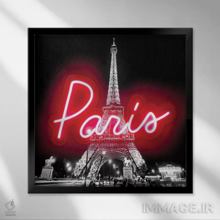 تابلو دکوراتیو نئون قرمز پاریس روی مشکی اثر هیلی کار