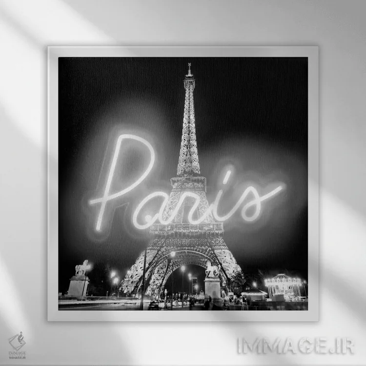 «نئون سفید پاریس روی مشکی» اثرِ «هیلی کار» با رویکرد هنری، یک انتخاب شیک و تمیز برای دیوارهایی است که دنبال نظم و کنتراست پُرانرژی.