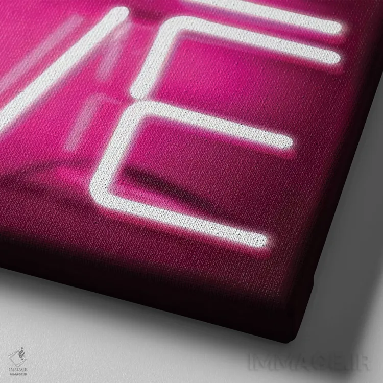 تابلو نئون عشق عشق عشق صورتی روی مشکی اثر هیلی کار - نمای نزدیک بافت بوم