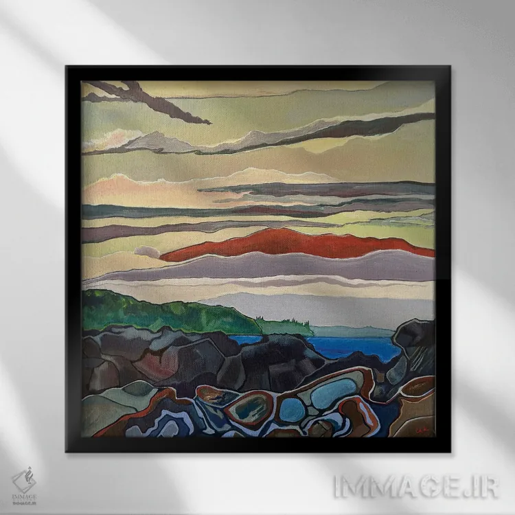 براساس پالت ترکیبی اثر، قاب بلوط روشن (چوبی) پیشنهاد اول است و استخوانی ملایم مکمل. برای سفارشهای پروژهای با ابعاد و قابهای اختصاصی با ایماژ در تماس باشید.