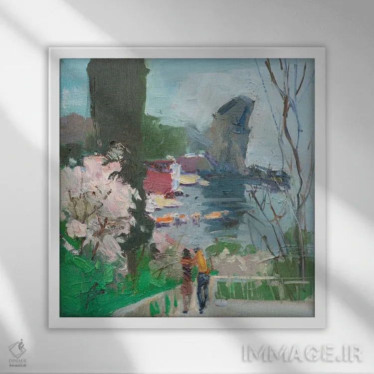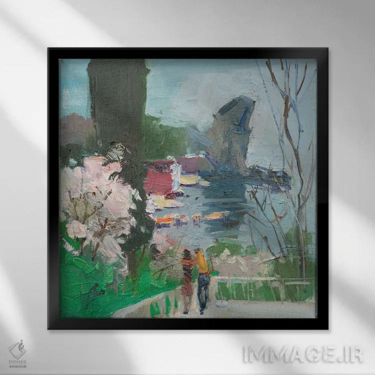 براساس پالت ترکیبی اثر، قاب تیک گرم (چوبی) پیشنهاد اول است و مشکی مات (فریم متوسط) مکمل. برای سفارشهای پروژهای با ابعاد و قابهای اختصاصی با ایماژ در تماس باشید.
