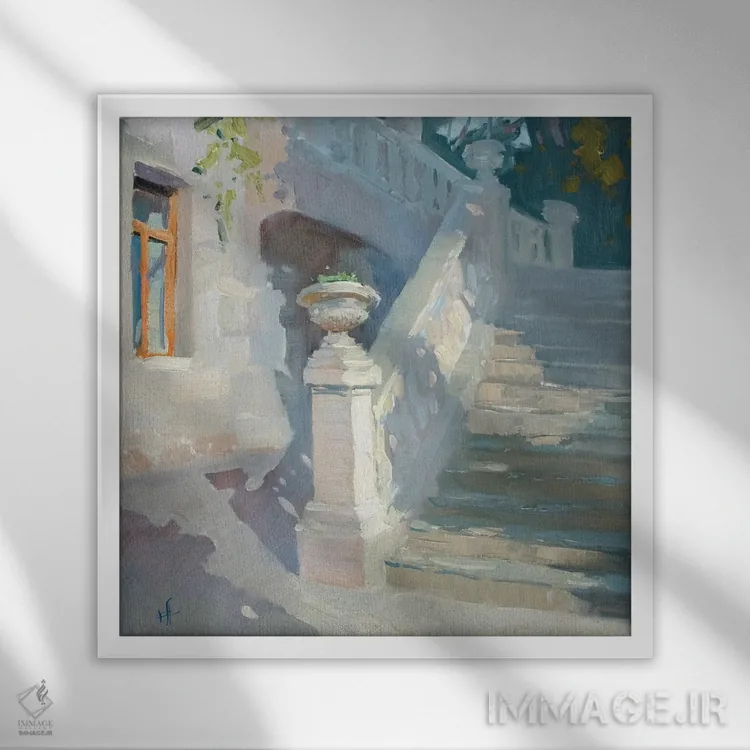 براساس پالت سرد اثر، قاب سفید مات (فریم باریک) پیشنهاد اول است و نقرهای برسخورده (متالیک) مکمل. برای سفارشهای پروژهای با ابعاد و قابهای اختصاصی با ایماژ در تماس باشید.