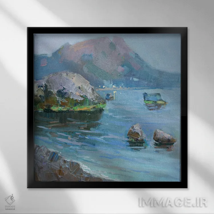 براساس پالت سرد اثر، قاب سفید مات (فریم باریک) پیشنهاد اول است و نقرهای برسخورده (متالیک) مکمل. برای سفارشهای پروژهای با ابعاد و قابهای اختصاصی با ایماژ در تماس باشید.