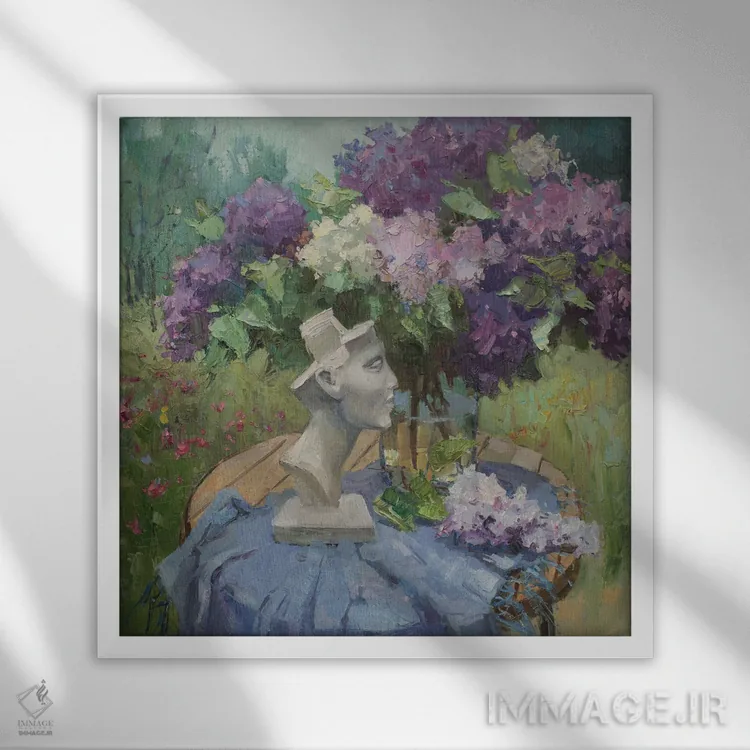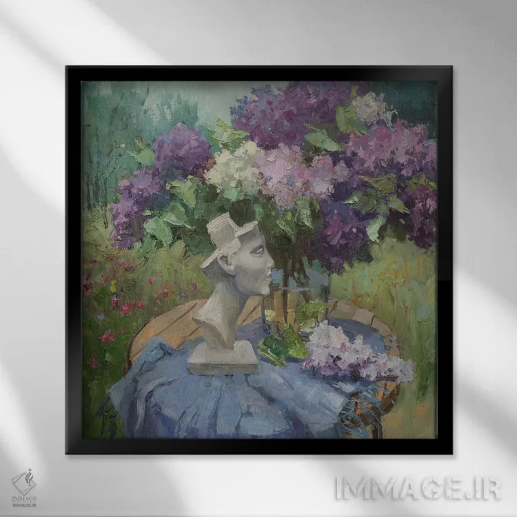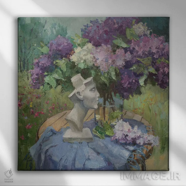 برای فضاهایی که به لطافت نیاز دارند، «یاس بنفش با سر نفرتیتی» اثرِ «کنتس آرت (هنرمند یا استودیو)» تعادل رنگیِ لطیفی به چیدمان میدهد؛ برای کنار میز آرایش یا کنسول انتخابی خوشسلیقه است. با قاب روشن یا چوبی، حس طبیعیتری پیدا میکند.
