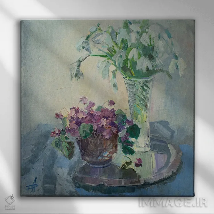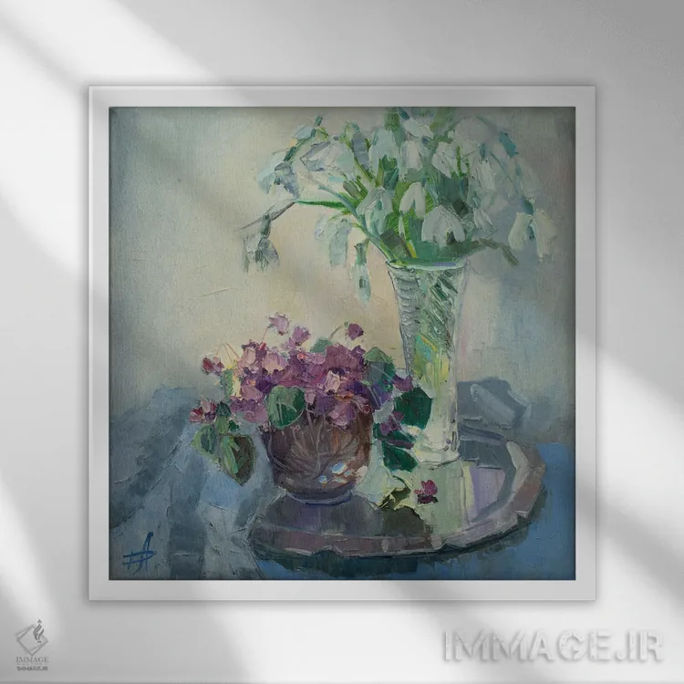 این اثر با عنوان «طبیعت بیجان سیکلامن و گل برفی» اثرِ «کنتس آرت (هنرمند یا استودیو)»، برای دیوارهای شاخص و چیدمانهای سطحبالا مناسب است.