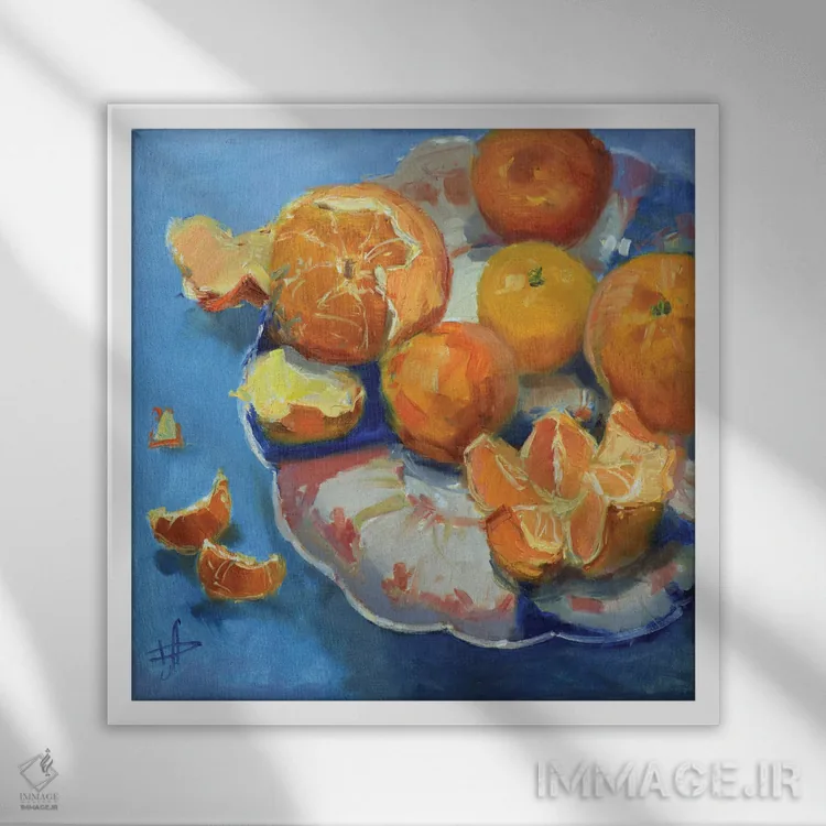 براساس پالت ترکیبی اثر، قاب تیک گرم (چوبی) پیشنهاد اول است و مشکی مات (فریم متوسط) مکمل. برای سفارشهای پروژهای با ابعاد و قابهای اختصاصی با ایماژ در تماس باشید.