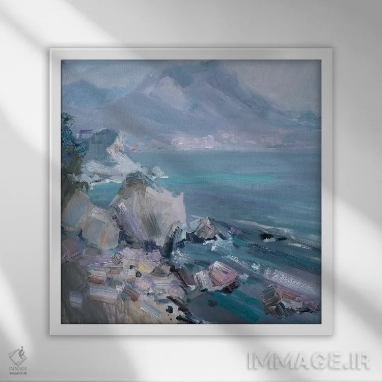 براساس پالت سرد اثر، قاب سفید مات (فریم باریک) پیشنهاد اول است و نقرهای برسخورده (متالیک) مکمل. برای سفارشهای پروژهای با ابعاد و قابهای اختصاصی با ایماژ در تماس باشید.