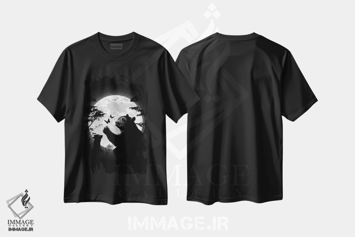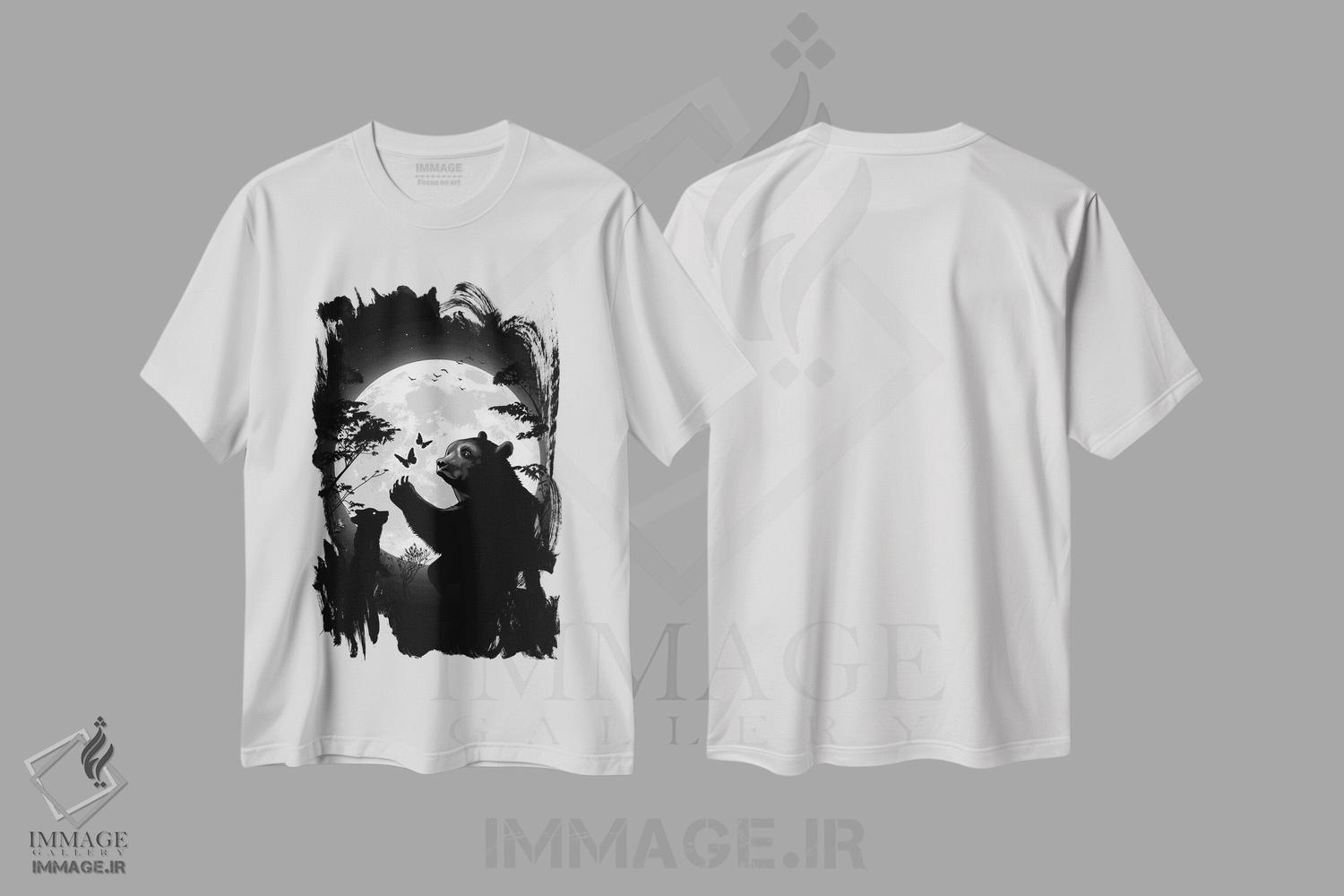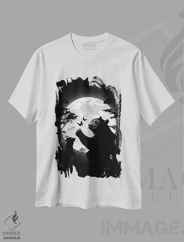 تیشرت هنری «خرس مادری که با توله اش زیر ماه با پروانه ها بازی می کند»؛ معرفی طرح و نکات ست