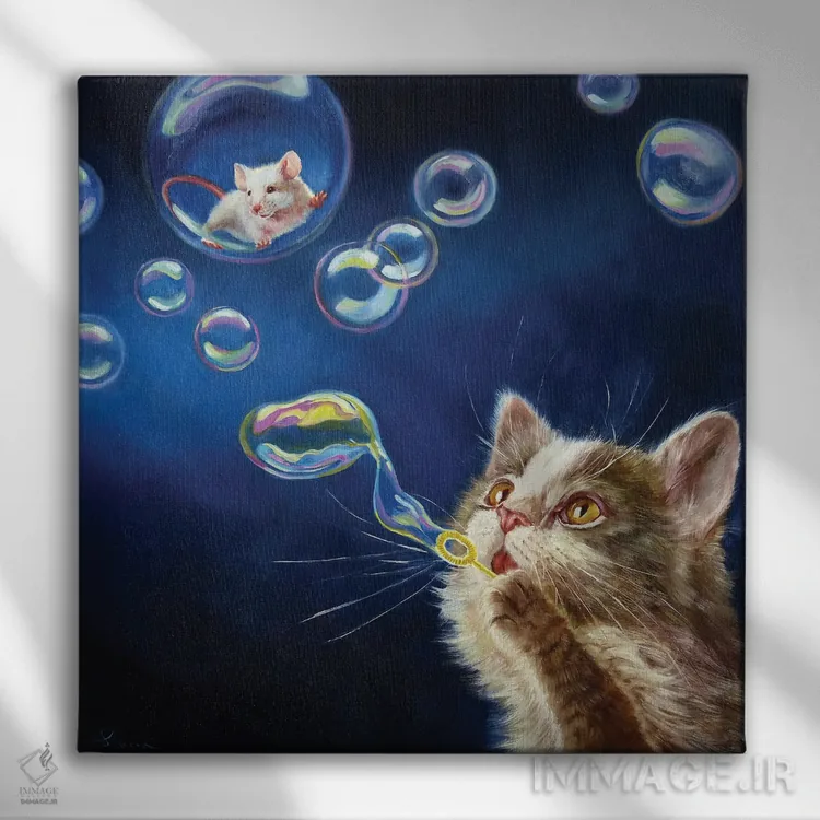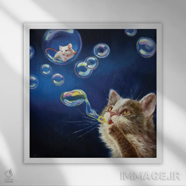 «حباب بازی» اثرِ «لوسیا هفرنان» از آن کارهاییست که به دیوار، انرژیِ نرم و زنده میدهد؛ برای دکورهای مدرن و مینیمال انتخاب خوبیست. با نورپردازی نقطهای، جذابتر هم میشود.