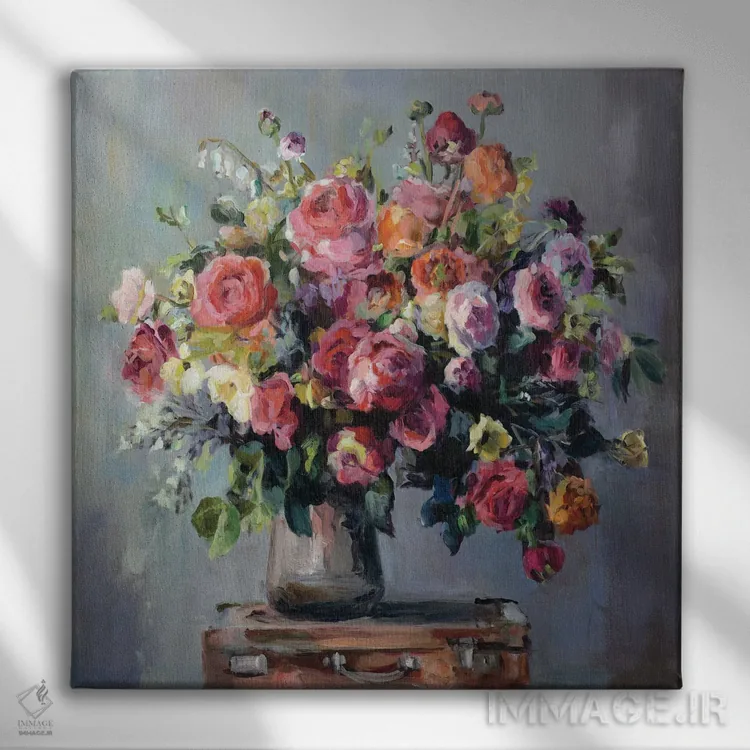 برای اتاق خواب و نشیمنهای آرام، «دستهگل فراوان» اثرِ «مریلین هاگمن» در کنار چوب و پارچههای روشن، عالی مینشیند؛ برای اتاق خواب انتخابی خوشسلیقه است. اگر دنبال «زیباییِ بیصدا» هستید، این اثر همان حس را دارد.