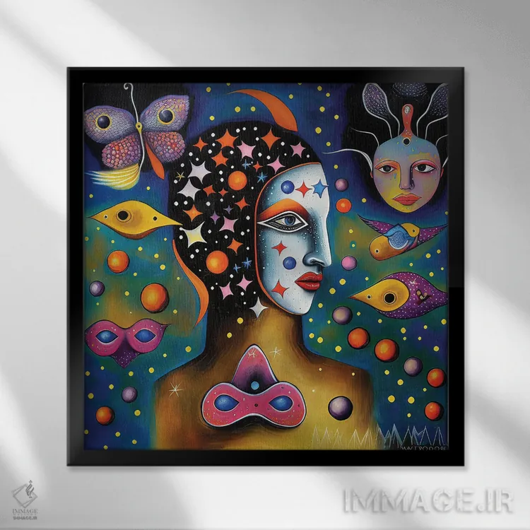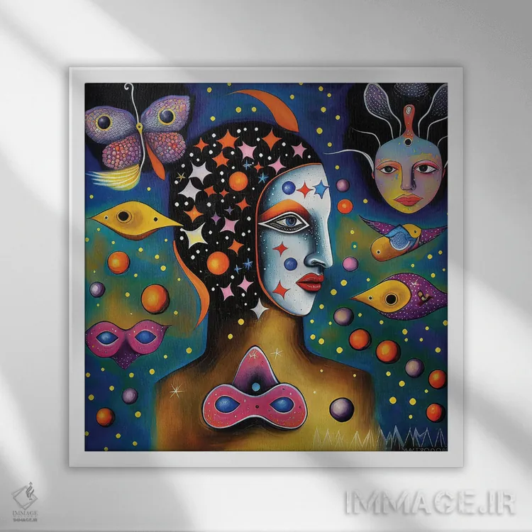 براساس پالت ترکیبی اثر، قاب تیک گرم (چوبی) پیشنهاد اول است و مشکی مات (فریم متوسط) مکمل. برای سفارشهای پروژهای با ابعاد و قابهای اختصاصی با ایماژ در تماس باشید.
