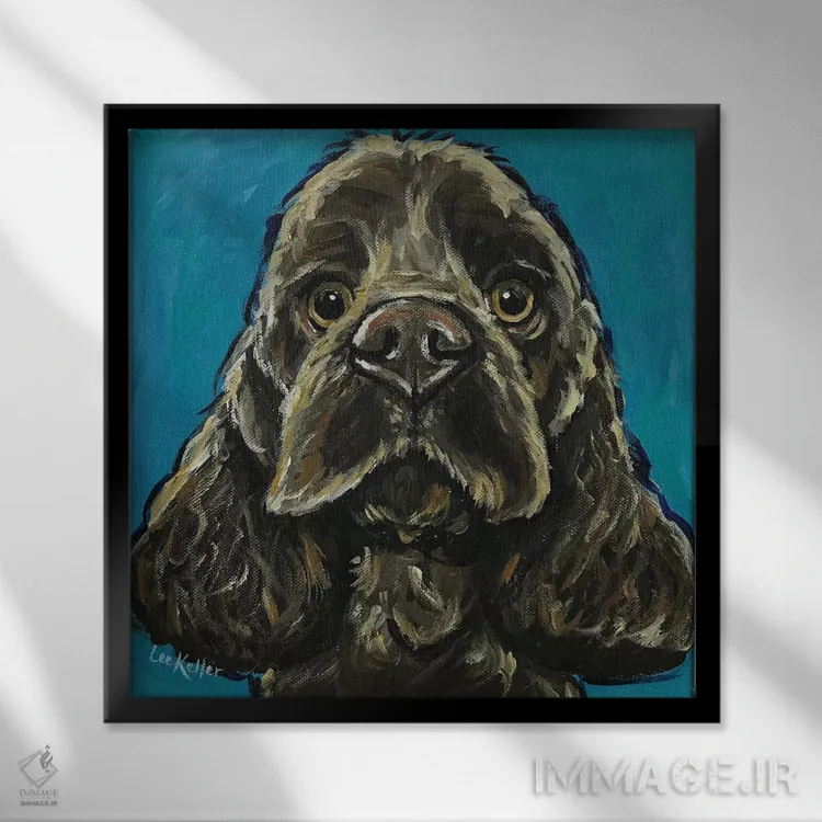 تابلو کوکر اسپانیل روی سبزآبی اثر هیپی هاوند استودیوز (استودیو هنری)