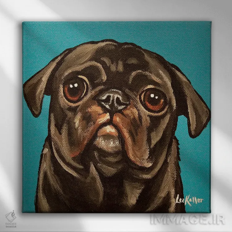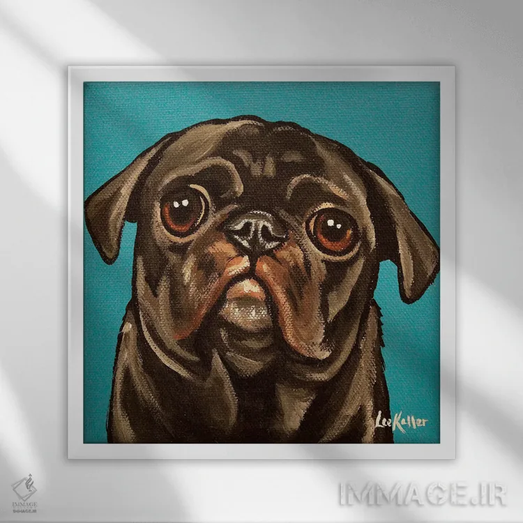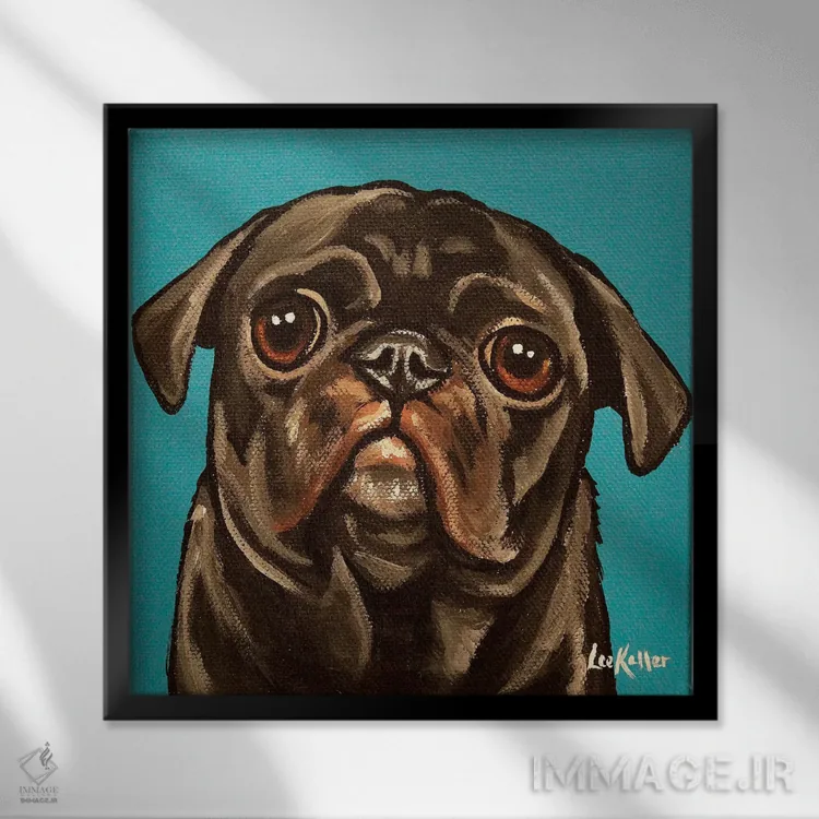 تابلو پاگ سیاه روی زمینه آبی-سبز اثر هیپی هاوند استودیوز (استودیو هنری)