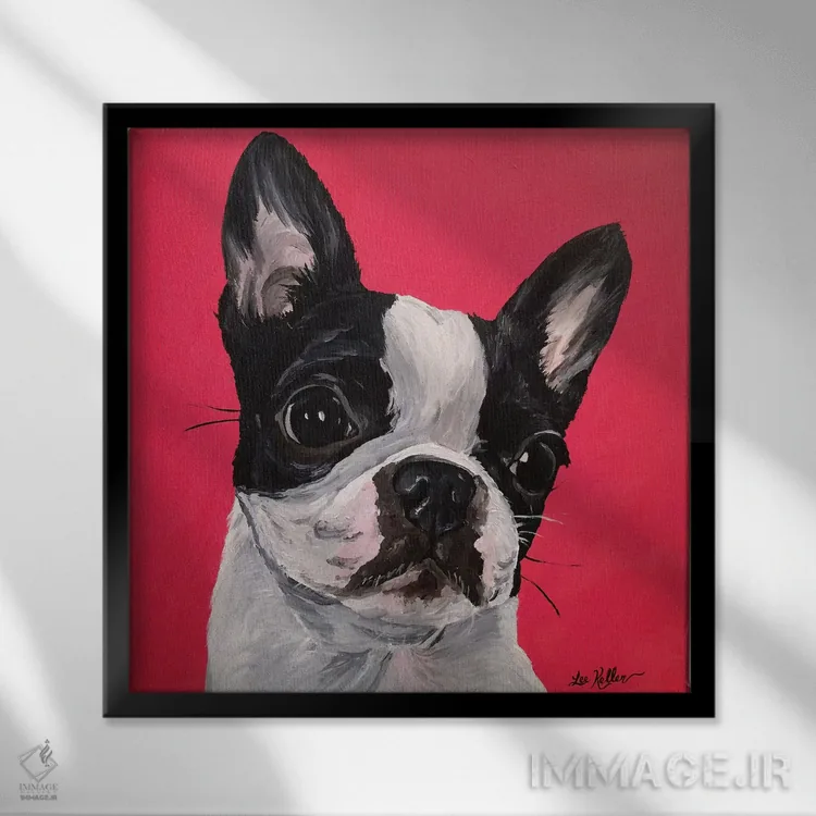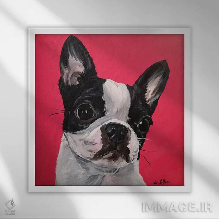 تابلو بوستون تریر ربکا اثر هیپی هاوند استودیوز (استودیو هنری) - نمای قاب‌دار سفید