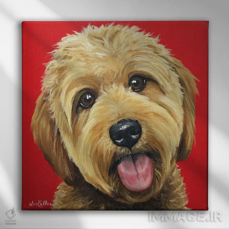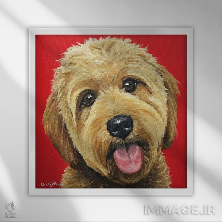 Apricot Golden Doodle On Red BY Hippie Hound Studios