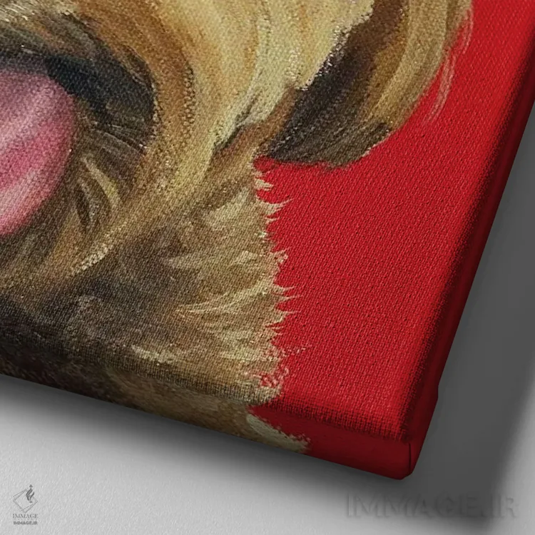 تابلو گلدن دودل زردآلویی روی قرمز اثر هیپی هاوند استودیوز (استودیو هنری) - نمای نزدیک بافت بوم