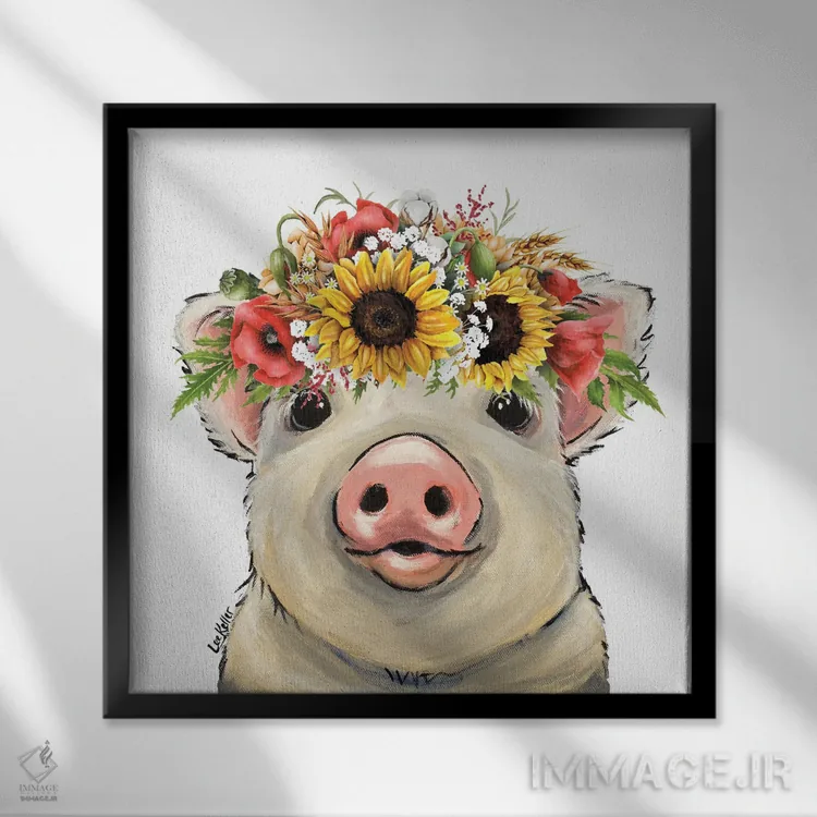 «نقاشی خوک با آفتابگردان، پیزلی» اثرِ «هیپی هاوند استودیوز (استودیو هنری)» برای هدیه هم انتخابی مطمئن است؛ چون حال خوب میآورد.