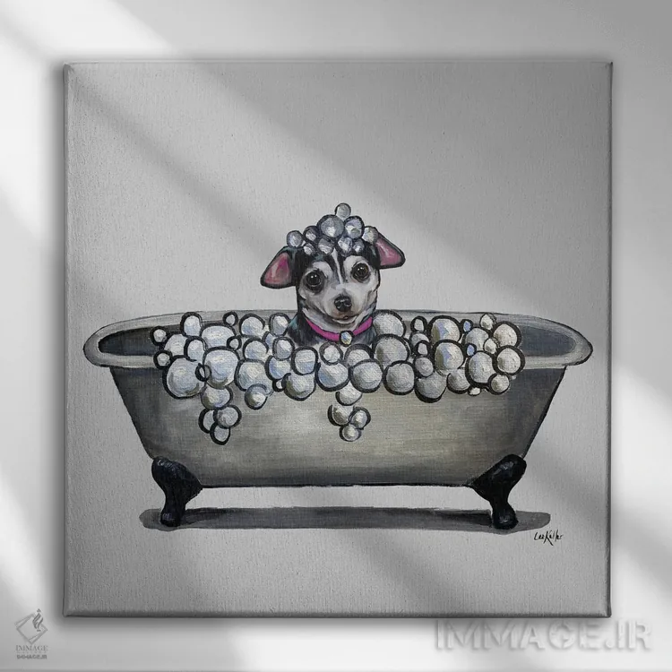 تابلو دکوراتیو سری سگ ها در وان، چی واوا در وان اثر هیپی هاوند استودیوز