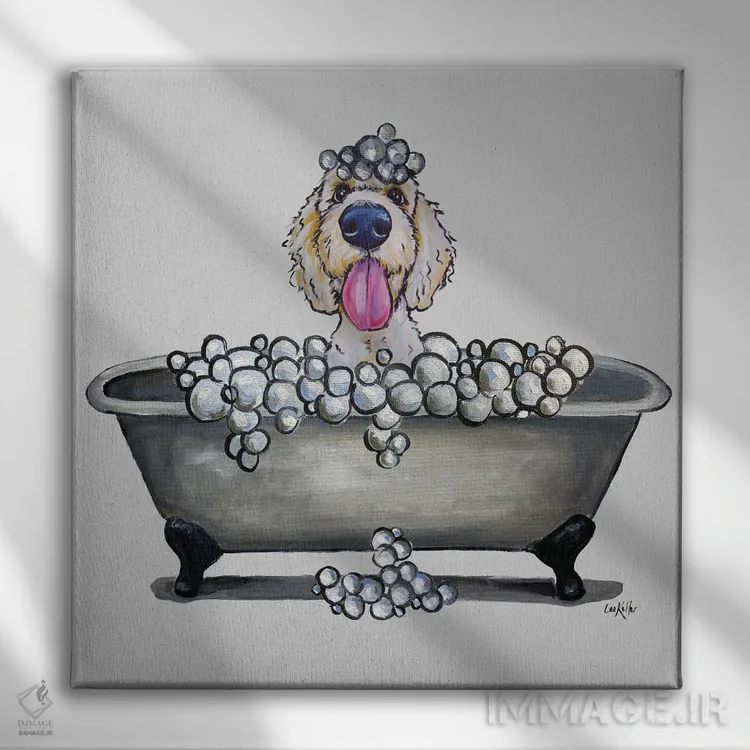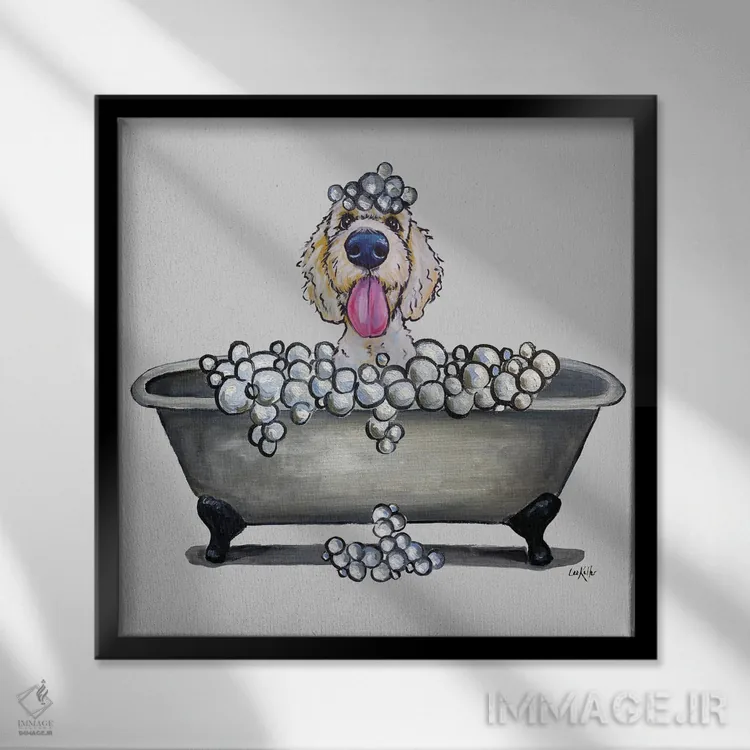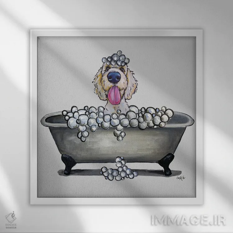 اگر میخواهید دیوار کمی سرزندگیِ محترمانه داشته باشد، «سری سگها در وان، گلدن دودل در وان» اثرِ «هیپی هاوند استودیوز (استودیو هنری)» گرما و شخصیت به فضا اضافه میکند، برای اتاق کودک (بدون لحن کودکانه) گزینهٔ مناسبیست. هر بار نگاهش میکنید، یک جزئیات تازه به چشم میآید.