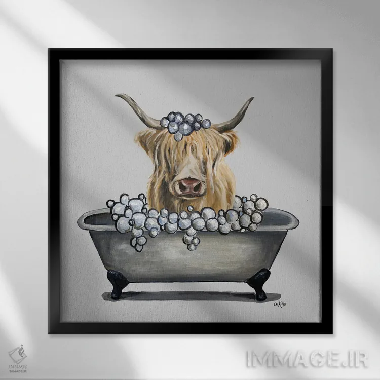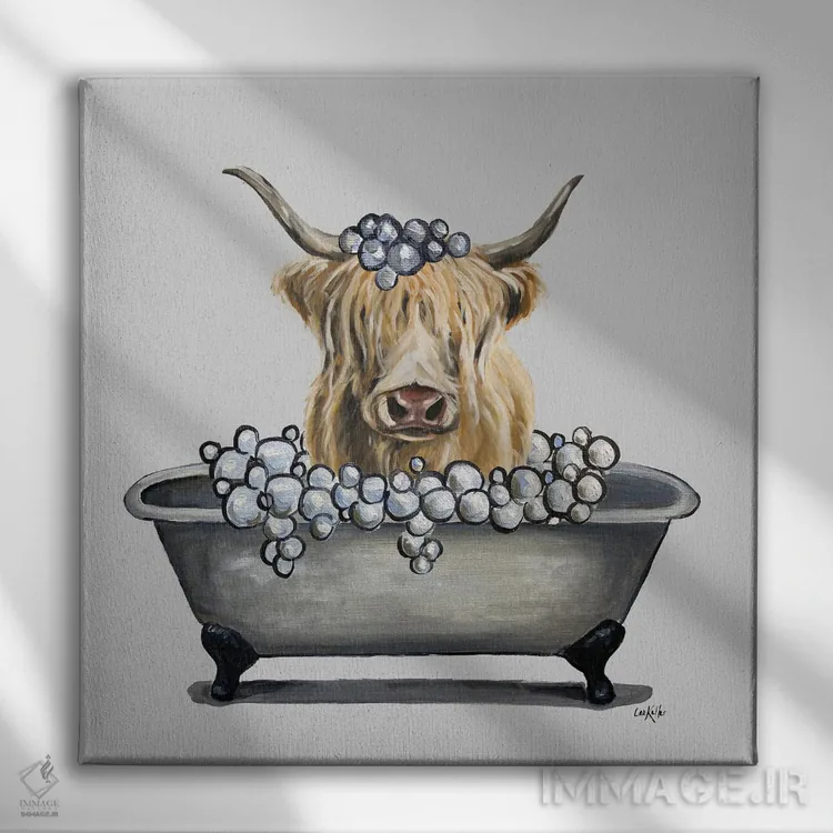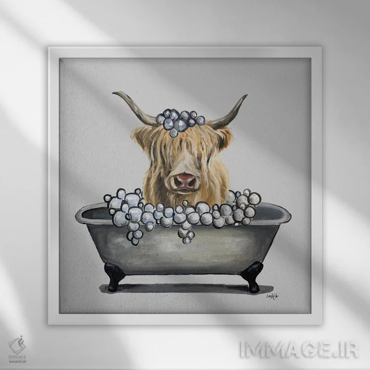 تابلو سری حیوانات در وان، گاو هایلند در وان اثر هیپی هاوند استودیوز (استودیو هنری)