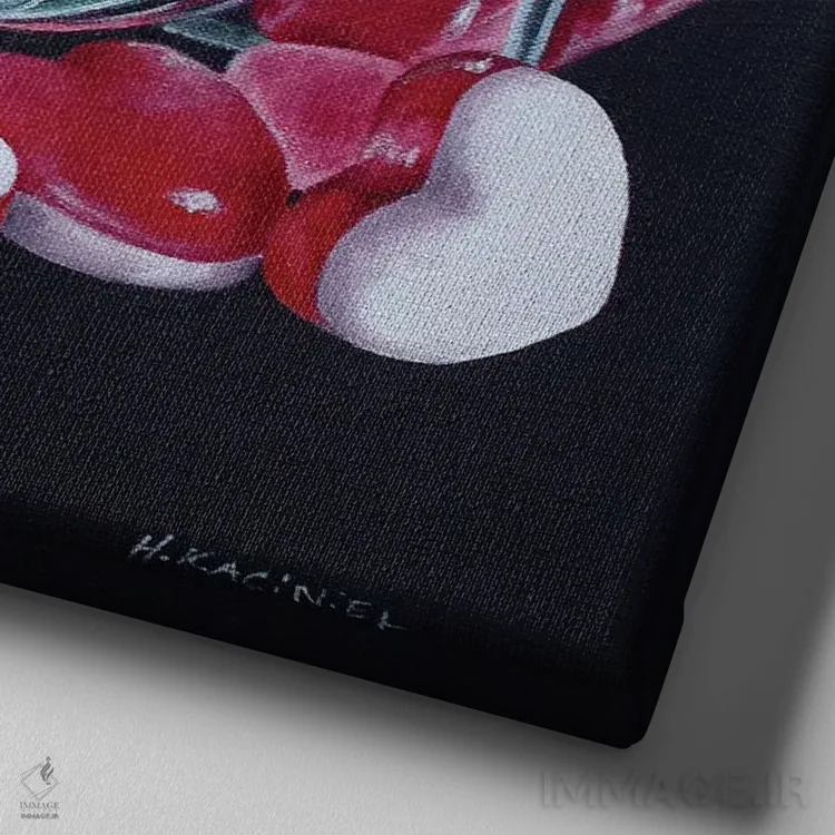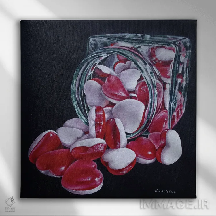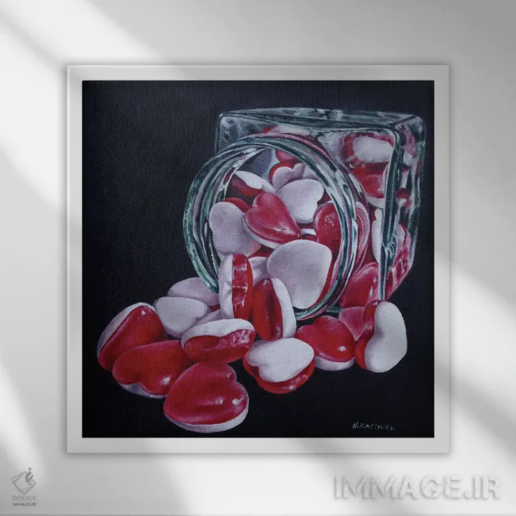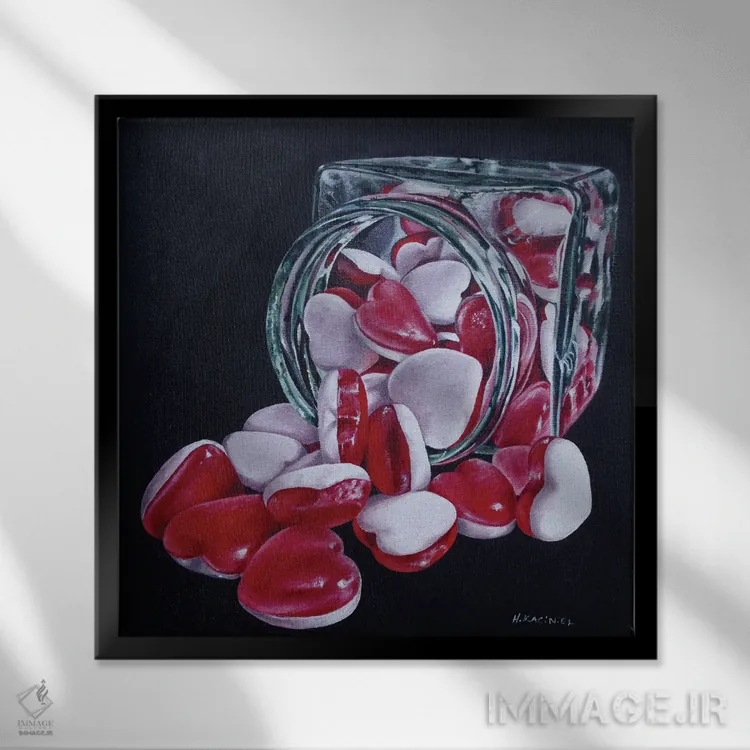 این تابلو با عنوان «شیشه قلبها» اثرِ «هانا کاچینیل»، حسِ گرم و صمیمی به فضا میدهد.