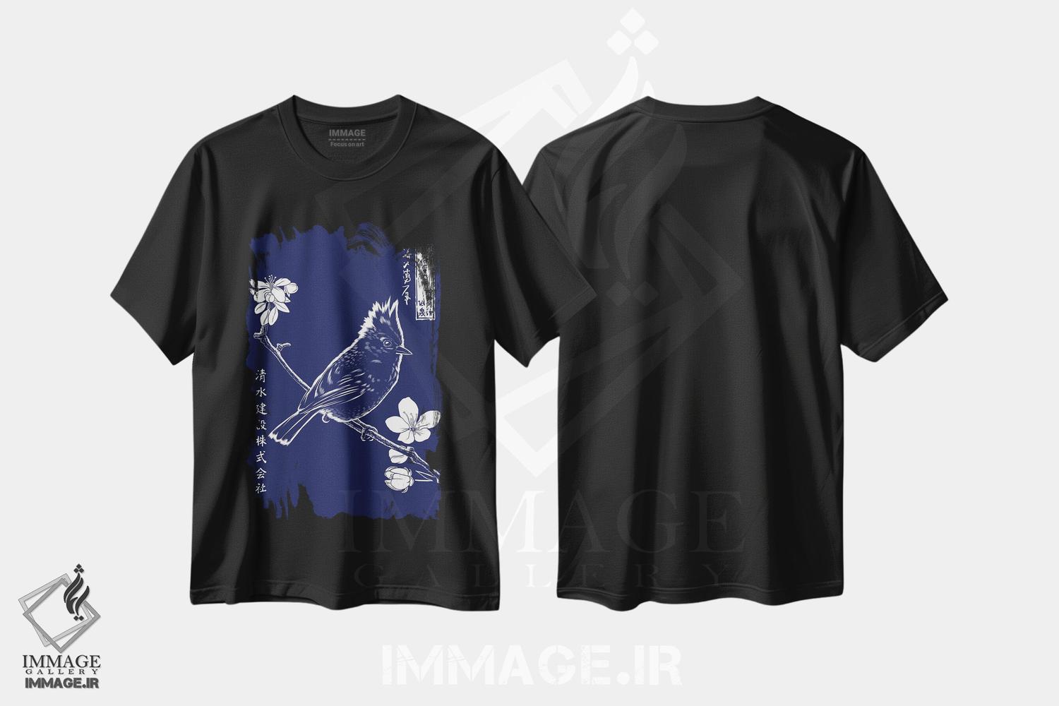 تیشرت طرح دار گنجشک روی شاخه ای در شب ژاپن اثر آلبرتو پرز