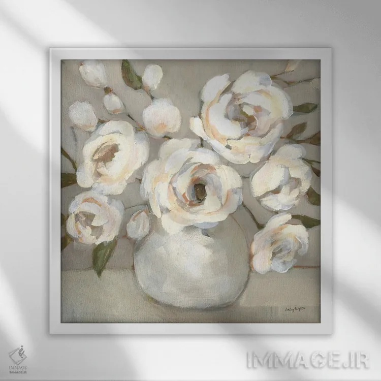 براساس پالت گرم اثر، قاب بلوط روشن (چوبی) پیشنهاد اول است و استخوانی ملایم مکمل. برای سفارشهای پروژهای با ابعاد و قابهای اختصاصی با ایماژ در تماس باشید.