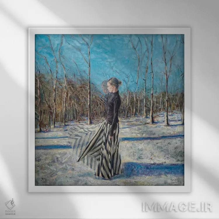براساس پالت ترکیبی اثر، قاب تیک گرم (چوبی) پیشنهاد اول است و مشکی مات (فریم متوسط) مکمل. برای سفارشهای پروژهای با ابعاد و قابهای اختصاصی با ایماژ در تماس باشید.
