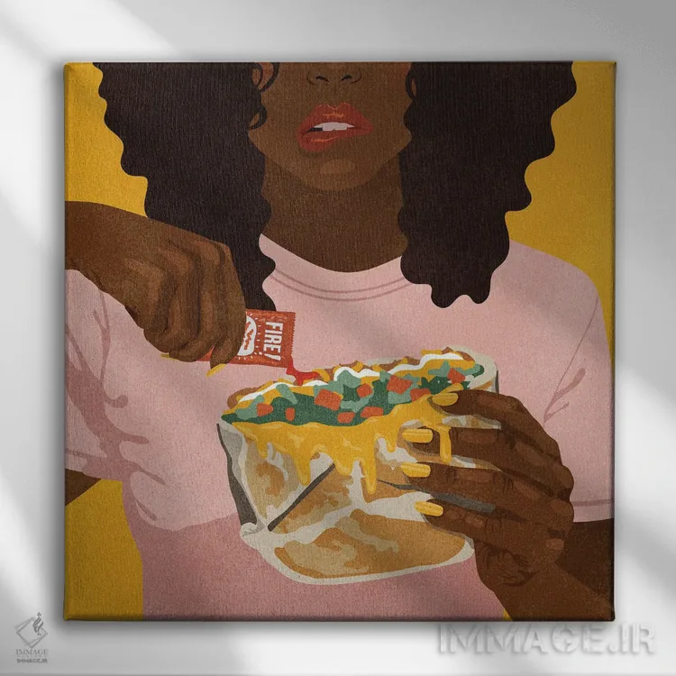 «آتش» اثرِ «هانا رَند» برای کافهاستایلهای خانگی و دیوارهای نزدیک میز عالی است.