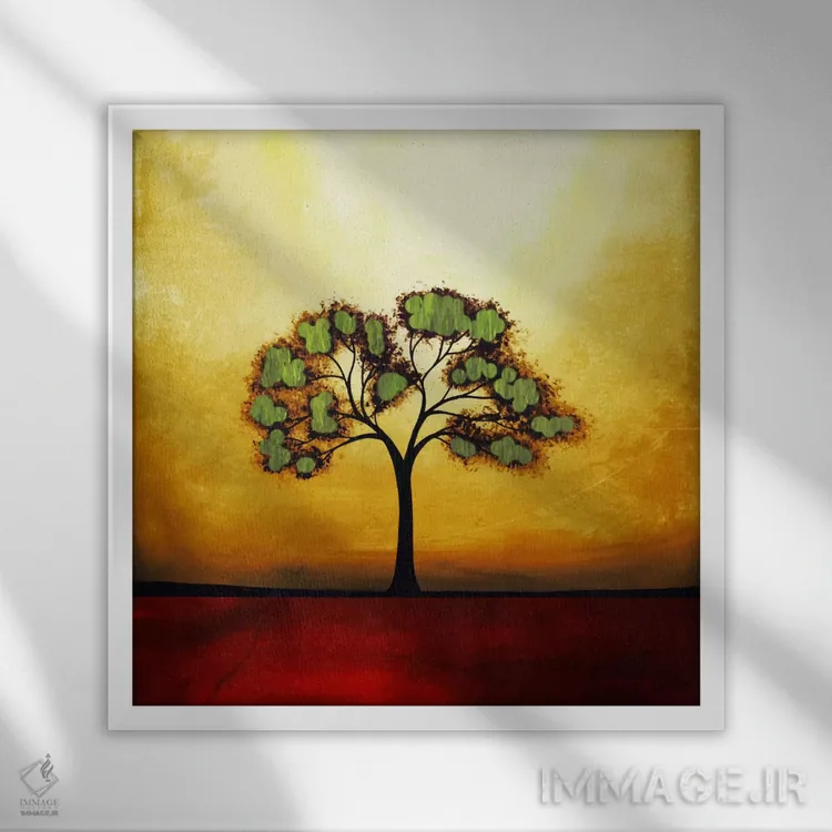 براساس پالت گرم اثر، قاب تیک گرم (چوبی) پیشنهاد اول است و مشکی مات (فریم متوسط) مکمل. برای سفارشهای پروژهای با ابعاد و قابهای اختصاصی با ایماژ در تماس باشید.
