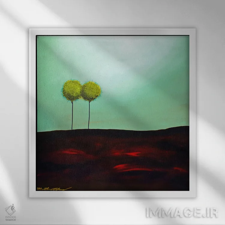 براساس پالت ترکیبی اثر، قاب تیک گرم (چوبی) پیشنهاد اول است و مشکی مات (فریم متوسط) مکمل. برای سفارشهای پروژهای با ابعاد و قابهای اختصاصی با ایماژ در تماس باشید.