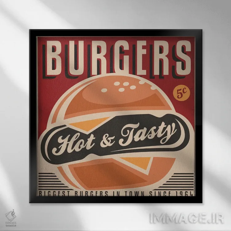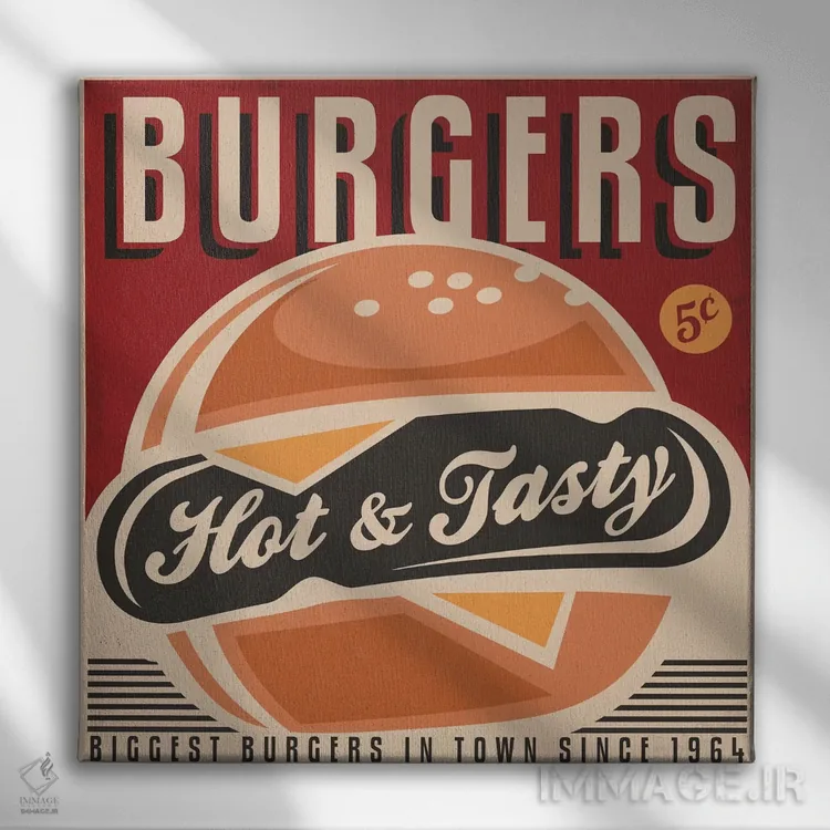تابلو اینجا همبرگر هست اثر هانیمون هتل (برند هنری)