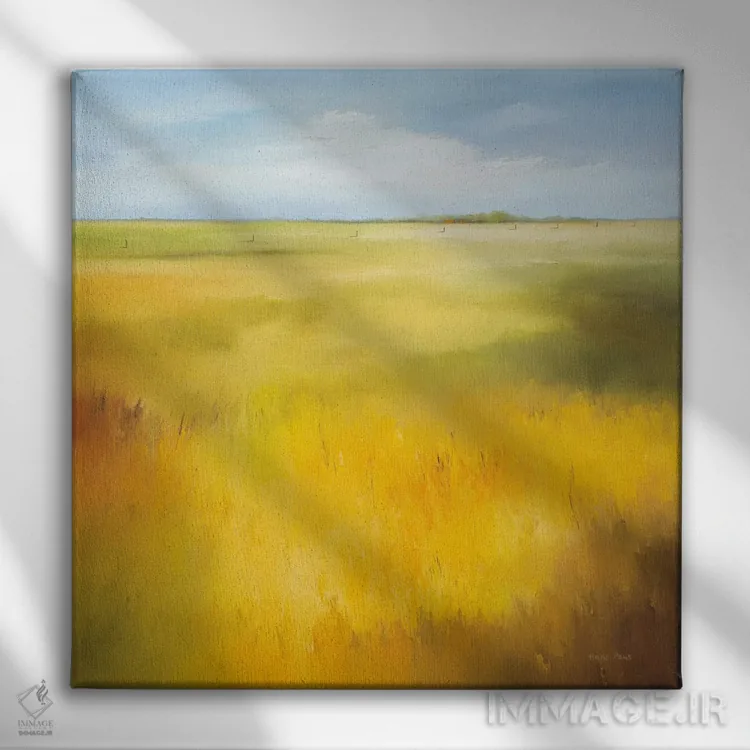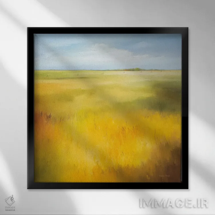 در «مزرعه زرد ۱» اثرِ «هانس پاوس»، ریتم بصری به چشم میآید؛ مناسب برای دیوار شاخص کنار مبلمان ساده.