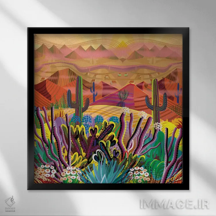 براساس پالت ترکیبی اثر، قاب تیک گرم (چوبی) پیشنهاد اول است و مشکی مات (فریم متوسط) مکمل. برای سفارشهای پروژهای با ابعاد و قابهای اختصاصی با ایماژ در تماس باشید.