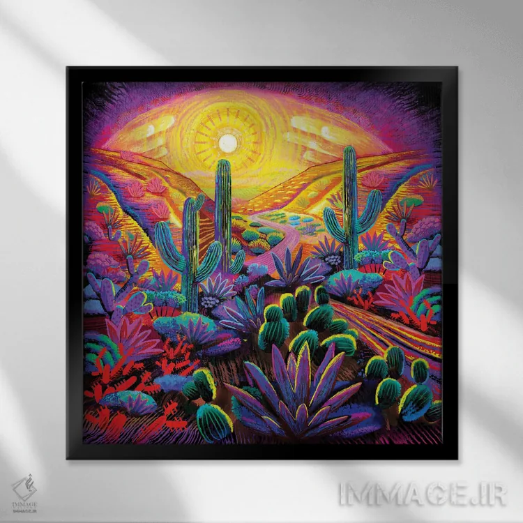 براساس پالت ترکیبی اثر، قاب تیک گرم (چوبی) پیشنهاد اول است و مشکی مات (فریم متوسط) مکمل. برای سفارشهای پروژهای با ابعاد و قابهای اختصاصی با ایماژ در تماس باشید.