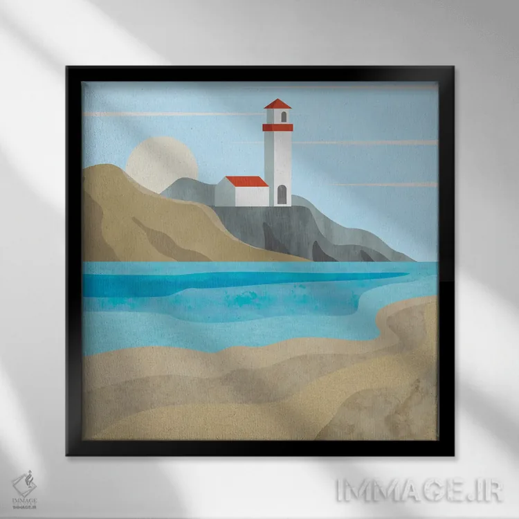«فانوس دریایی ایست اند» اثرِ «آندریا هازه» در فضای دکور ساحلی، کنار پارچههای روشن و اکسسوریهای طبیعی (حصیر/چوب) عالی هماهنگ میشود.