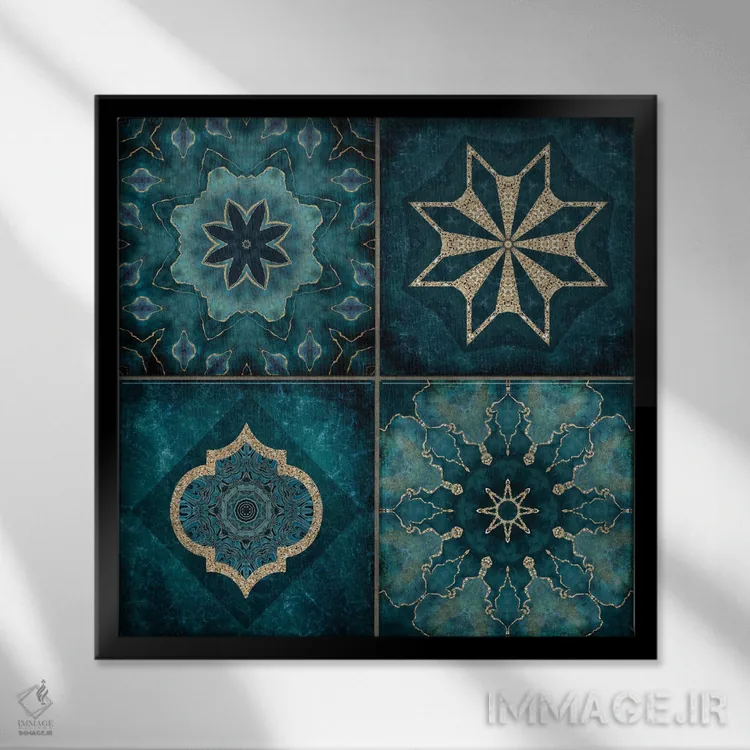 وقتی میخواهید اثر برجستهتر شود، فیروزهای را در یک شیء سرامیکی/فلزی کم و دقیق اضافه کنید تا چیدمان شیکتر و دقیقتر دیده شود. انتخاب قاب هم میتواند این اکسنت را تقویت کند.