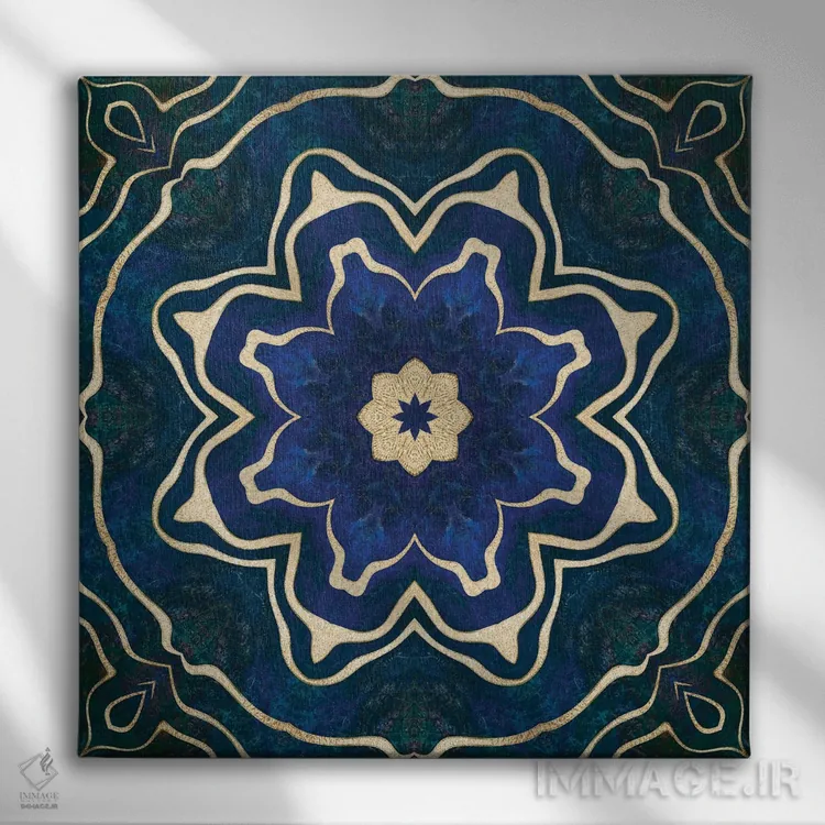 در «کاشی آبی طلایی» اثرِ «آندریا هازه»، عناصر گیاهی نقش اصلی دارند؛ مناسب برای فضاهایی که دنبال آرامش و لطافت پُرانرژی.
