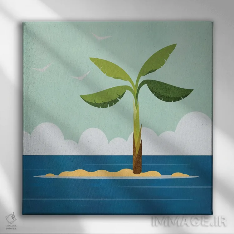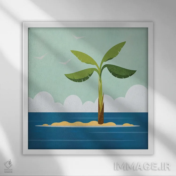 «جزیره درخت نخل» اثرِ «آندریا هازه» یک قاب دکوراتیوِ گرم و دلنشین است؛ این اثر در اجرای پرداختِ هنری، فضا را نرمتر و صمیمیتر نشان میدهد.