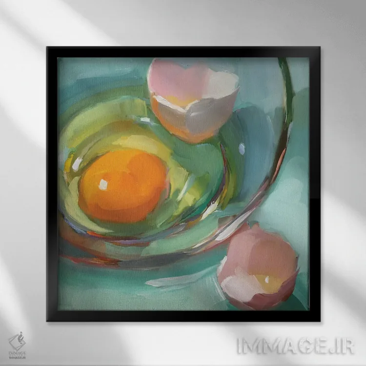 «مطالعه تخم ۴» اثرِ «هالی استورلی» برای کافهاستایلهای خانگی و دیوارهای نزدیک میز عالی است.