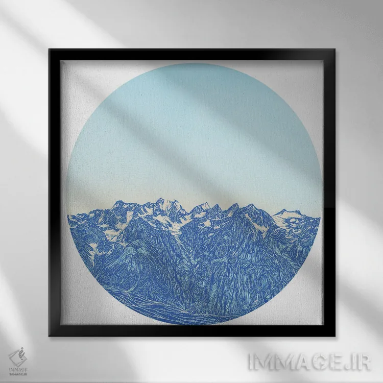 براساس پالت سرد اثر، قاب سفید مات (فریم باریک) پیشنهاد اول است و نقرهای برسخورده (متالیک) مکمل. برای سفارشهای پروژهای با ابعاد و قابهای اختصاصی با ایماژ در تماس باشید.