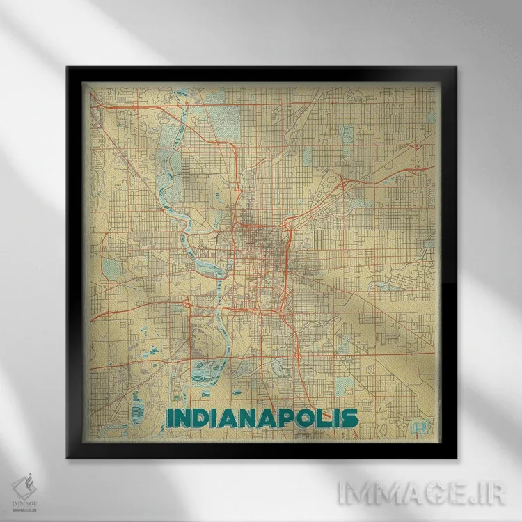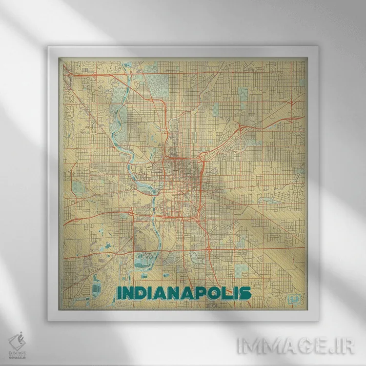 «نقشه شهری ایندیاناپلیس با طراحی رترو» اثرِ «هوبرت روگوسکی» میتواند یک دیوار ساده را شیک و بهروز نشان دهد.
