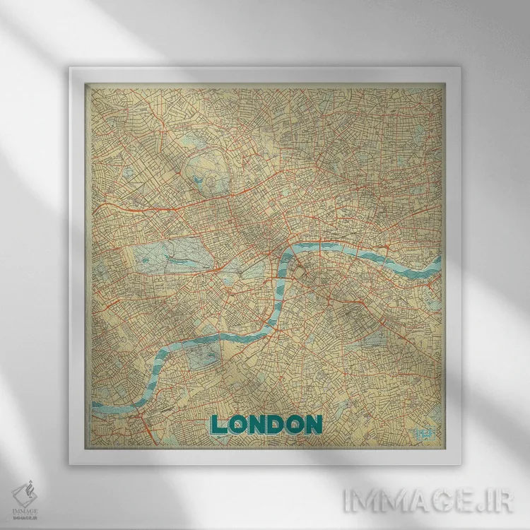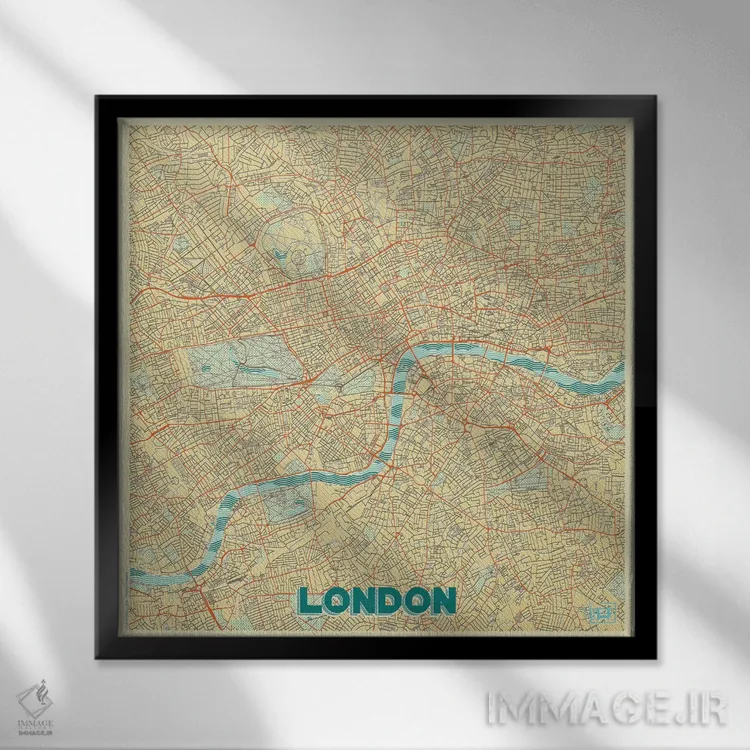 «نقشه شهری لندن با طراحی رترو» اثرِ «هوبرت روگوسکی» یک قاب شهری و مدرن است؛ موضوعِ این اثر با اجرای هنری، کنار مبلمان ساده خیلی خوب مینشیند.