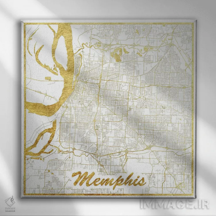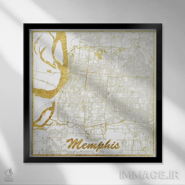 در «نقشه شهری ممفیس با ورق طلا» اثرِ «هوبرت روگوسکی»، توجه به جزئیاتِ گرافیکی و تعادل رنگی دیده میشود؛ مناسب برای دیوار شاخص.