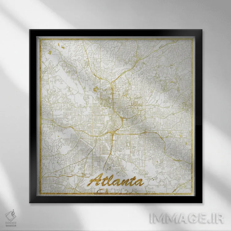 تابلو نقشه شهری آتلانتا با ورق طلا اثر هوبرت روگوسکی