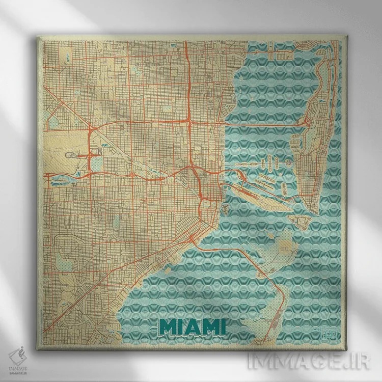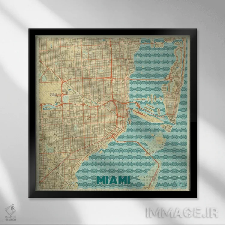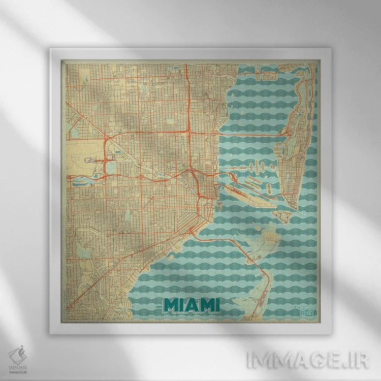 تابلو نقشه شهری میامی با طراحی رترو اثر هوبرت روگوسکی